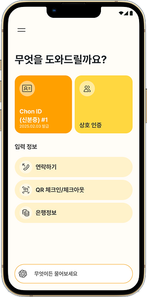 촌 (CHON)은 블록체인 기반 DID(Decentralized Identity)플랫폼 기업입니다